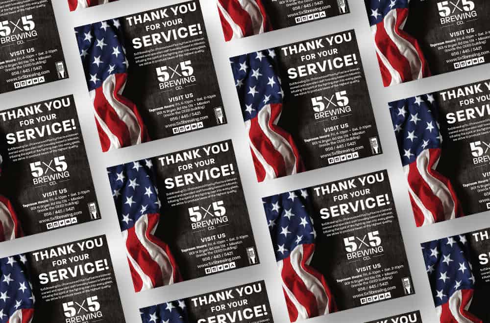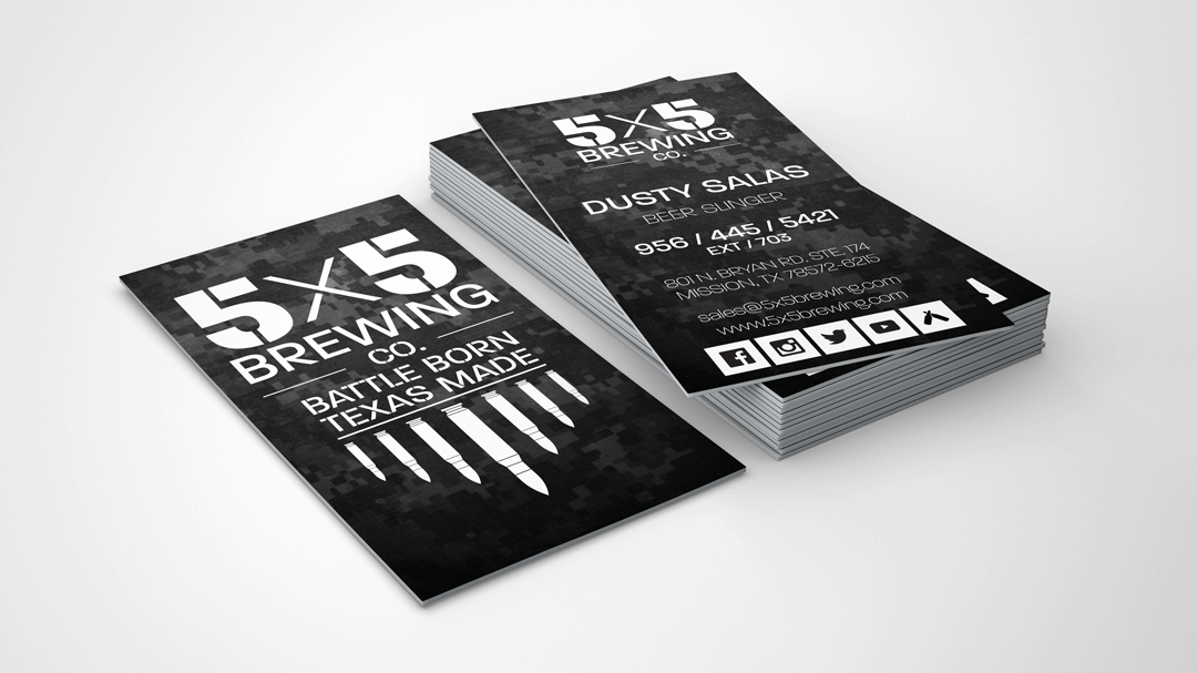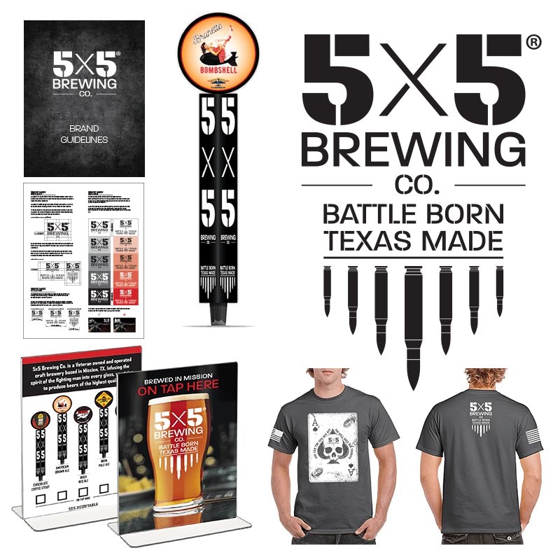 5x5 Brewing Co. (pronounced Five by Five) is a Veteran owned and operated craft brewery based in Mission, Texas. We worked with them to create their entire corporate identity from the ground up.